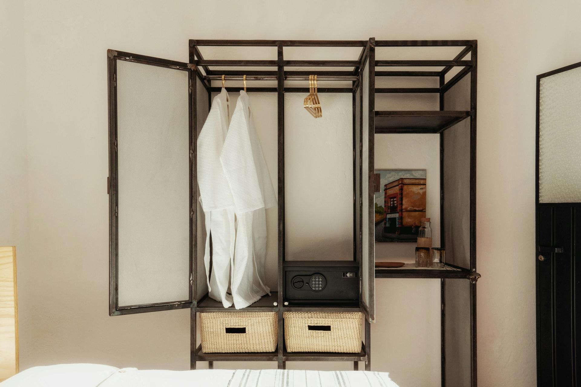236 ft² Courtyard‑View Room. Discover comfort and style in this elegantly designed room, offering two plush double beds and a generous work desk. Enjoy complimentary high-speed Wi‑Fi and start your day with an authentic Oaxacan breakfast. The room includes ample storage, an in-room safe, air conditioning, and a minibar for your convenience. The private bathroom features premium amenities, a hairdryer, bathrobes, and slippers. Each room is thoughtfully crafted by the acclaimed designer Raúl Cabra, blending refined comfort with signature design.